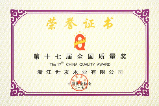 嚴(yán)格的質(zhì)量標(biāo)準(zhǔn),不僅讓世友地板憑借高質(zhì)量走向普通家庭,萬(wàn)科、恒大等多家房地產(chǎn)頭部企業(yè)也向其發(fā)出了精裝修地板訂單。目前,世友木業(yè)銷售網(wǎng)絡(luò)遍布全國(guó),產(chǎn)品遠(yuǎn)銷美國(guó)、加拿大、歐盟、日本、韓國(guó)等全球30多個(gè)國(guó)家和地區(qū),并榮獲了“中國(guó)房地產(chǎn)開發(fā)企業(yè)綜合實(shí)力TOP500首選供應(yīng)商”、“地板行業(yè)國(guó)家品牌”、“浙江省政府質(zhì)量獎(jiǎng)”、“全國(guó)質(zhì)量獎(jiǎng)”、“亞洲質(zhì)量卓越獎(jiǎng)”等榮譽(yù)。